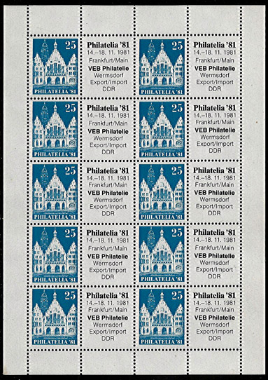Internationale BMA "Philatelia" 1981 - Werbebogen (Reprint von Briefmarken 1948 Freimarken Bautenserie - Alliierte Besetzung) |