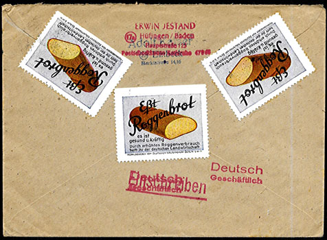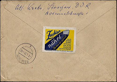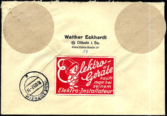 Briefrückseite - Werbe-Vignette als Briefverschlussmarke |