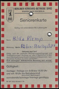 | 1986 Senioren Monatskarte Berlin-West | |||||||||