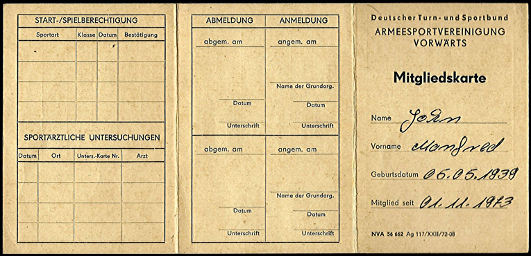 Armeesportvereinigung "Vorwärts" - Mitgliedskarte für Kinder & Jugendliche |