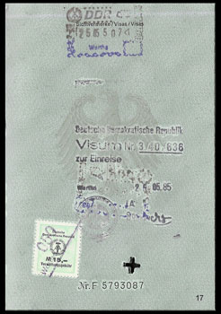 Diese Markenserie wurde vorwiegend durch die Zollorgane Grenztruppen und das MdI (VP) im Zusanmmenhang mit dem Grenzüberschreitenden Verkehr genutzt Nebenstehend Ausweisauszug eines BRD Bürgers von 1981 |