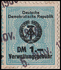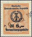 mit "Deutsche Demokratische Republik" im Markenbild, Währung "M", jetzt als "geschnittene" Marken - da sie direkt in Ausweis-Formulare gedruckt wurden. |