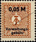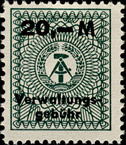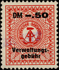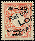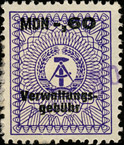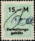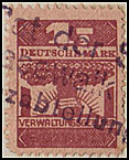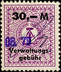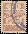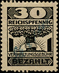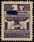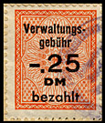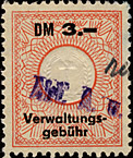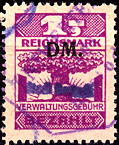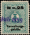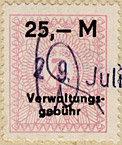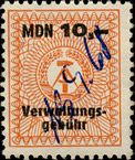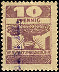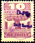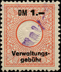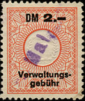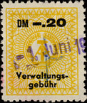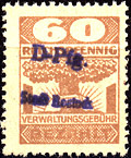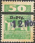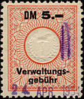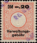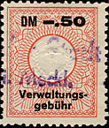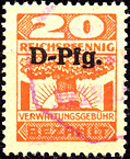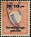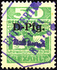 Währung "Deutsche Mark", die vorhandenen Reichsmark-Marken wurden maschinell oder mit Handstempel mit "D-Pfg." oder "DM." überdruckt. In vielen Ämtern wurden allerdings die Marken ohne Änderung (siehe oben) bis 1954 weiter verwendet. |