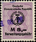 mit "Deutsche Demokratische Republik" im Markenbild, Währung "DM"; bisher für 1965 auf Dokument nachgewiesen |