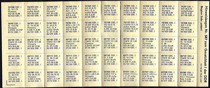Kompletter Bogen Nr. 587 Zum Gesetzblatt I der DDR | |||||||||||