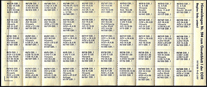 Kompletter Bogen Nr. 594 Zum Gesetzblatt I der DDR | ||||||||||||