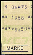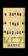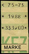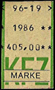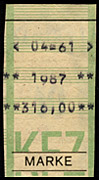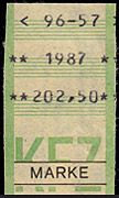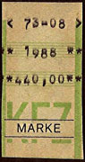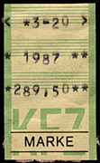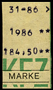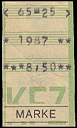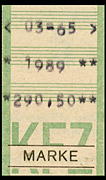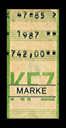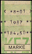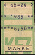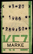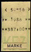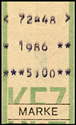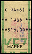 | Jahresbetrag für Kfz.-Typ - ??? - (??? Kfz.-Steuer + ??? Haftpflicht- Versicherung). Diese Wertstufe wurde nur gestückelt oder mittels Abbuchungs-Marken quittiert! | |||||||||||||