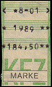 Ab 1984 konnten die Halter von Kraftfahrzeugen die fälligen Beträge für die Haftpflichversicherung und die Kfz-Steuer von ihrem Girokonto abbuchen lassen. Dies wurde ab 1985 massiv beworben, wie der beigefügte Beleg beweist. Die für den Kfz-Versichertenausweis erforderlichen Marken wurden mit den Kontoauszügen erstellt und den berechtigten Personen ggf. per Post zugestellt. Die notwendigen „Buchungs-Marken“ wurden nur als Gesamt-beitragsmarken erstellt. Die auf-wendige Stückelung wurde damit vermieden. Die entsprechenden Buchungsbelege wurden durch die Nutzer selbst auf die entsprechende Größe geschnitten und in die Kfz-Versichertenausweise eingeklebt.(siehe beigefügtes Beispiel eine kompletten Buchungsbeleges aus dem Jahre 1990)