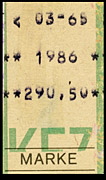 | Jahresbetrag für Kfz.-Typ - ??? - (180.- Kfz.-Steuer + 110,50 Haftpflicht- Versicherung). Diese Wertstufe wurde nur gestückelt oder mittels Abbuchungs-Marken quittiert! | |||||||||||||