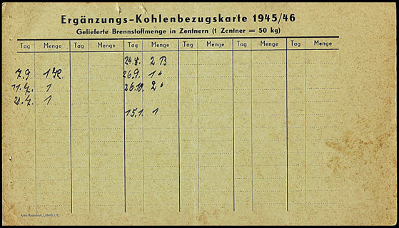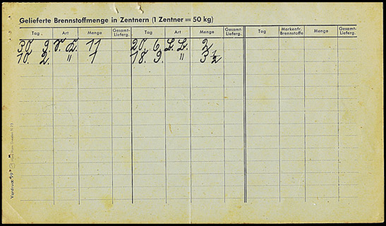 Ergänzungskarte für Steinkohlen/Braunkohlenbriketts - bis März 1945 | ||||||