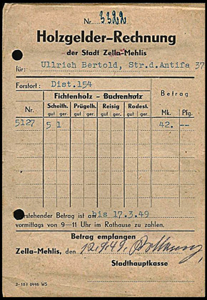 Holzgeld der Stadt Zella-Mehlis | ||||||||||||