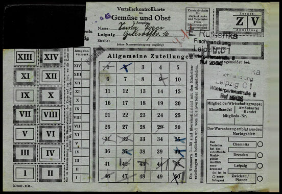 Verteiler Kontrollkarte (Stadt Leipzig C 1) Obst und Gemüse, Vorder und Rückseite | |||||||