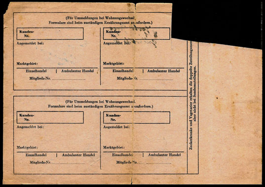Grund-Karte für Zucker, Nährmittel, Milch, Salz und Kaffe-Ersatz | Grund-Karte für BROT | ||||