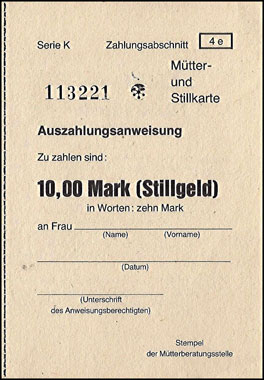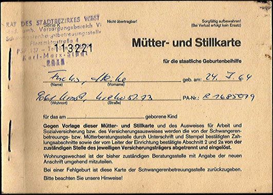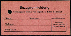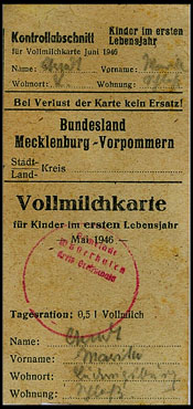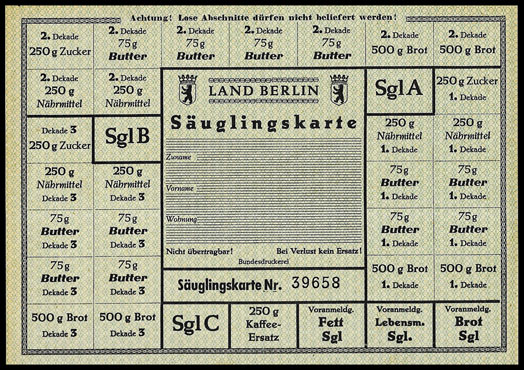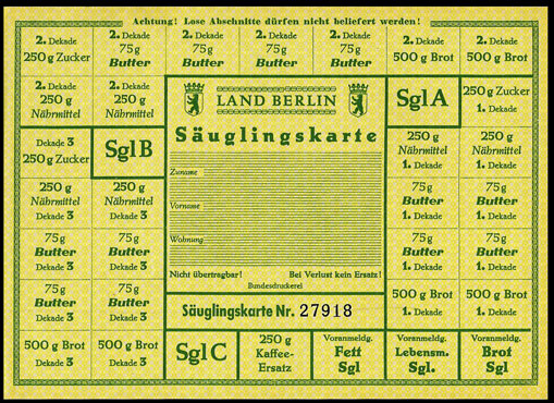 Lebensmittelkarte für die Säuglingsversorgung (Vorder- und Rückseite) | ||||||