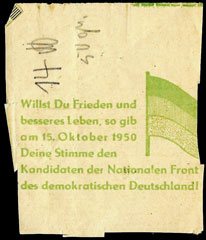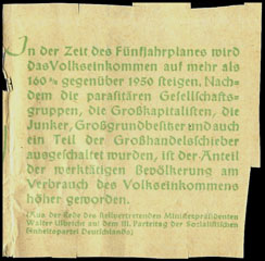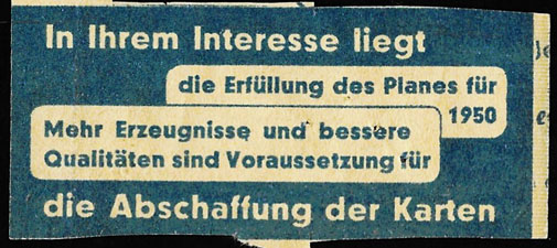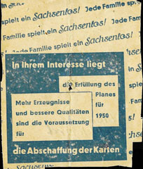 Zusatz-Karte D Land Sachsen Zentralstück (April 1950) | rückseitig politische Agitation | |||||