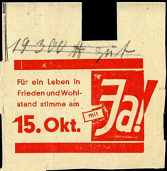 Zusatz-Karte D Land Sachsen Zentralstück (August 1950) | rückseitig politische Agitation | |||||