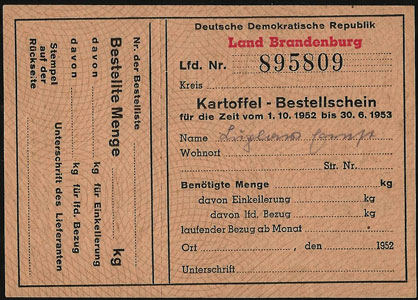 Lebensmittelkarten - DDR (ab Oktober 1949) |