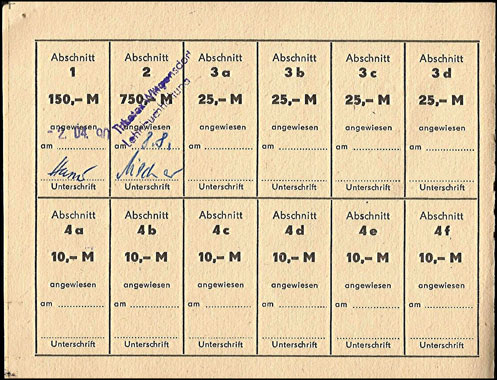 Auszahlungs-Beleg aus obigem Heft | ||||||