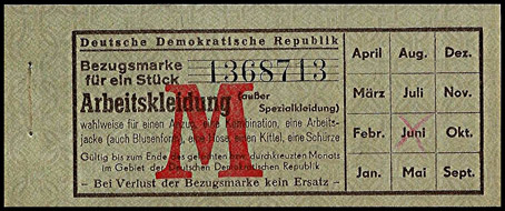 Bezugsmarke für Arbeitskleidung (Aufdruck F) | Bezugsmarke für Arbeitskleidung (Aufdruck M) | |||||||