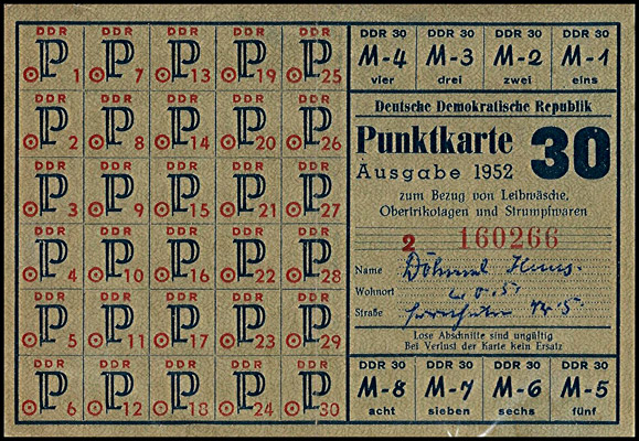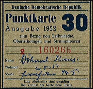 Bezugs-Berechtigung (Punkte Marken) für Leibwäsche, Obertrikotagen, Strumpfwaren | |||||||||||||||