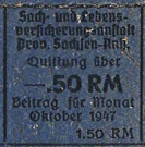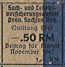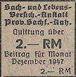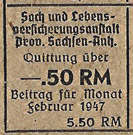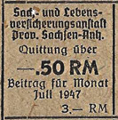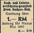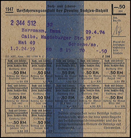 Versicherungszahlung für 1946 (nachträgliche Zahlung - im Mai 1949) monatlich 2,00 RM | ||||||||||||||