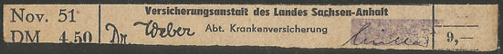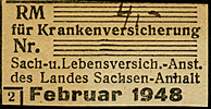 Krankenversicherung des Landes Sachsen-Anhalt Wert 4,- RM (handschriftlicher Werteintrag) | |||||||||||||