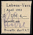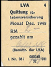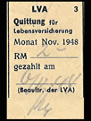Hier ein "Erster" Nachzahlbetrag für den Zeitraum vom 01.05.1945 bis zum 30.09.1946 (Quittungs-Marke/Schein vom 10. März 1948) |