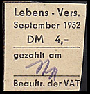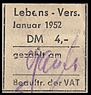 Quittungsmarken - Wert handschriftliche Einträge mit Bleistift, das "L" in V-Nr.L - kennzeichnet die Lebensversicherung | |||||