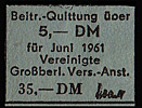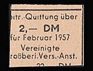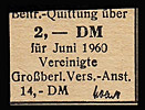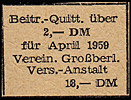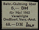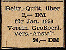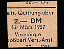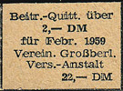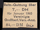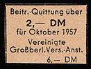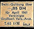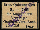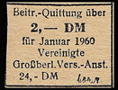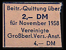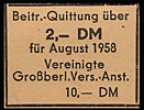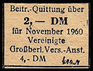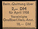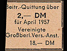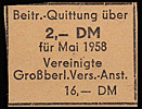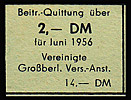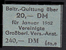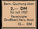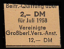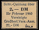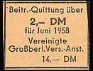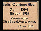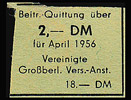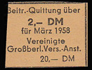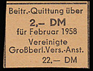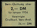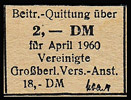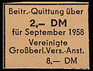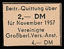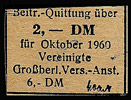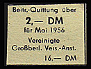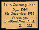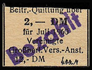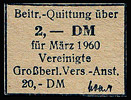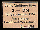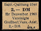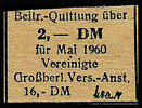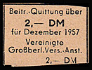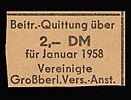 Beitragsquittung der Vereinigten Großberliner Versicherungsanstalt - Beitrag 2,- DM - Die Versicherungsart ist nicht ersichtlich | |||||||||