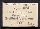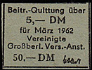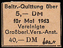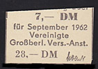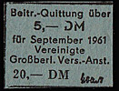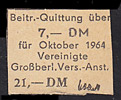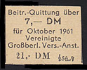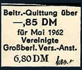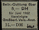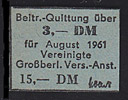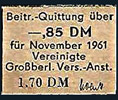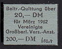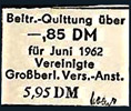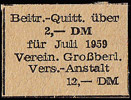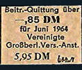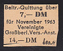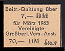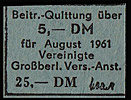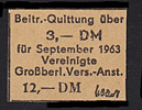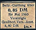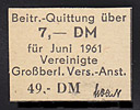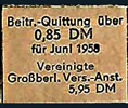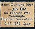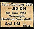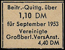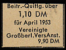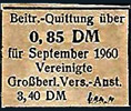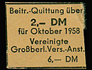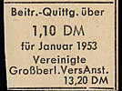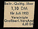 Beitragsmarke - der Vereinigten Großberliner Versicherungsanstalt - Beitrag 6,- DM | |||||||||