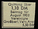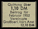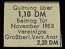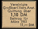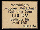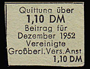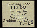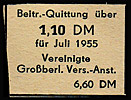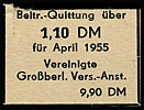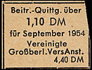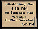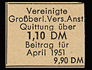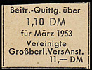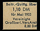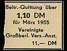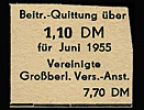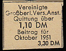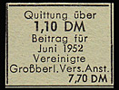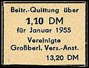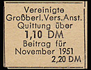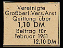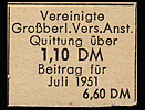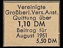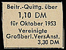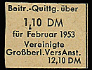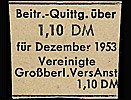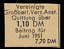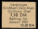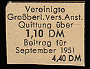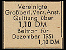 Beitragsquittung der Vereinigten Großberliner Versicherungsanstalt - Beitrag 1,10 DM - Die Versicherungsart ist nicht ersichtlich | |||||||||