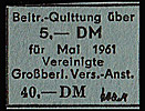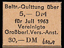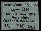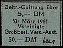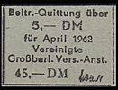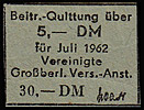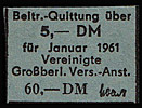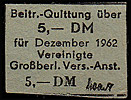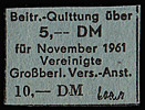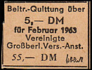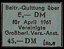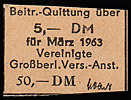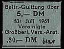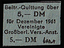 Beitragsquittung der Vereinigten Großberliner Versicherungsanstalt - Beitrag 5,- DM - Die Versicherungsart ist nicht ersichtlich | |||||||||