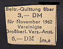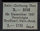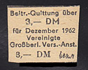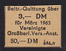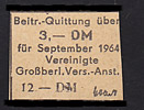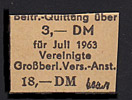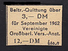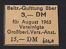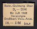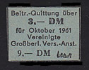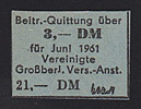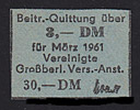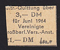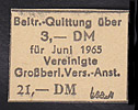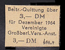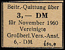 Beitragsquittung der Vereinigten Großberliner Versicherungsanstalt - Beitrag 3,- DM - Die Versicherungsart ist nicht ersichtlich | |||||||||
