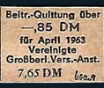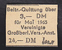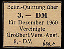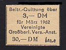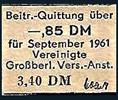 Beitragsquittung der Vereinigten Großberliner Versicherungsanstalt - Beitrag 3.- DM - Die Versicherungsart ist nicht ersichtlich | |||||||||
