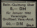 Beitragsquittung der Vereinigten Großberliner Versicherungsanstalt - Beitrag 5.- DM - Die Versicherungsart ist nicht ersichtlich | |||||||||