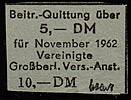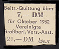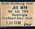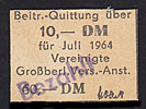 Beitragsquittung der Vereinigten Großberliner Versicherungsanstalt - Beitrag 10,- DM - Die Versicherungsart ist nicht ersichtlich | |||||||||