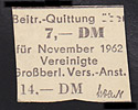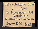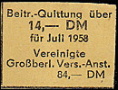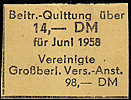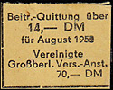 Beitragsquittung der Vereinigten Großberliner Versicherungsanstalt - Beitrag 14,- DM - Die Versicherungsart ist nicht ersichtlich | |||||||||