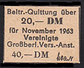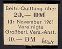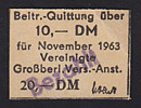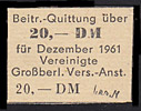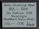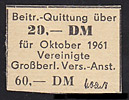 Beitragsquittung der Vereinigten Großberliner Versicherungsanstalt - Beitrag 20,- DM - Die Versicherungsart ist nicht ersichtlich | |||||||||