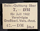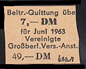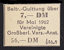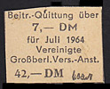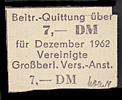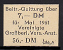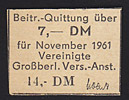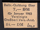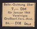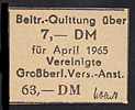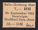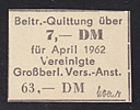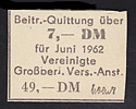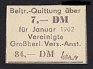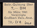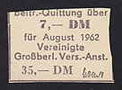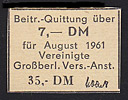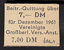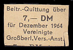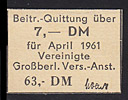 Beitragsquittung der Vereinigten Großberliner Versicherungsanstalt - Beitrag 7,- DM - Die Versicherungsart ist nicht ersichtlich | |||||||||
