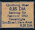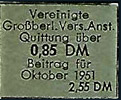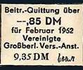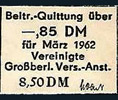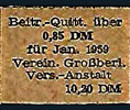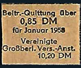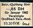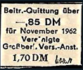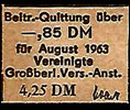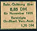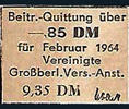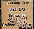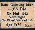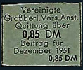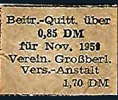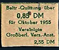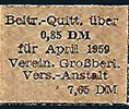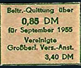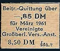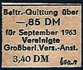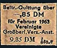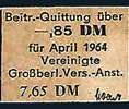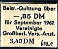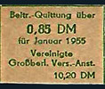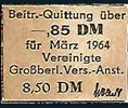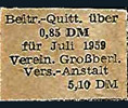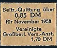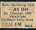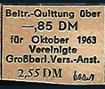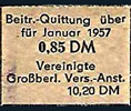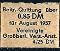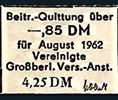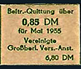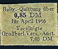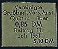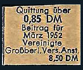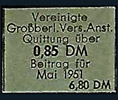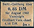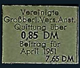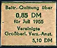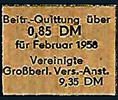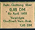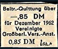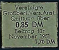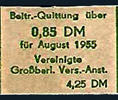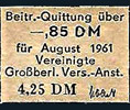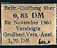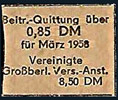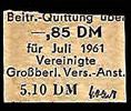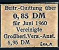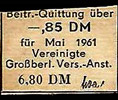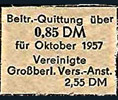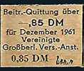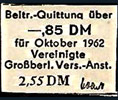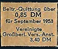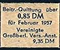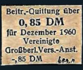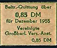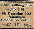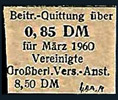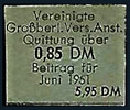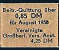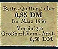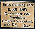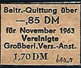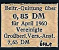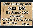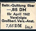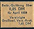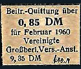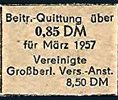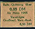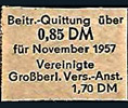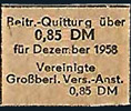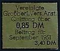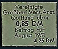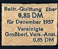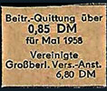 Beitragsquittung der Vereinigten Großberliner Versicherungsanstalt - Beitrag 0.85 DM - Die Versicherungsart ist nicht ersichtlich | |||||||||