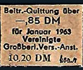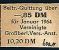 Beitragsquittung der Vereinigten Großberliner Versicherungsanstalt - Beitrag 0,85 DM - Die Versicherungsart ist nicht ersichtlich | |||||||||